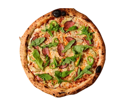 רוטב עגבניות, ארטישוק, פפרוני, רוקט, פלפל חריף.